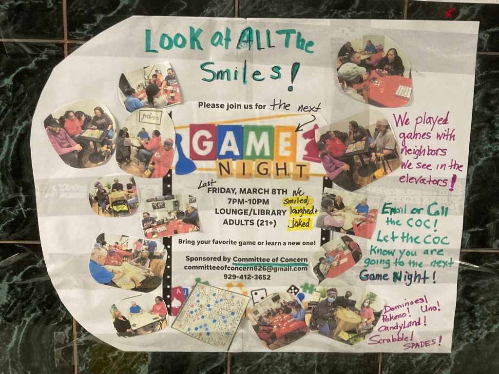 March 8th, a chill Friday night in Harlem when one can be doing laundry, watching tv, dining out with friends or even enjoying “Date Night,” several shareholders rewound the Covid clock to socialize the way we used to: playing games with friends! Sponsored by the Committee of Concern, Game Night is back by popular demand in Spring 2024!