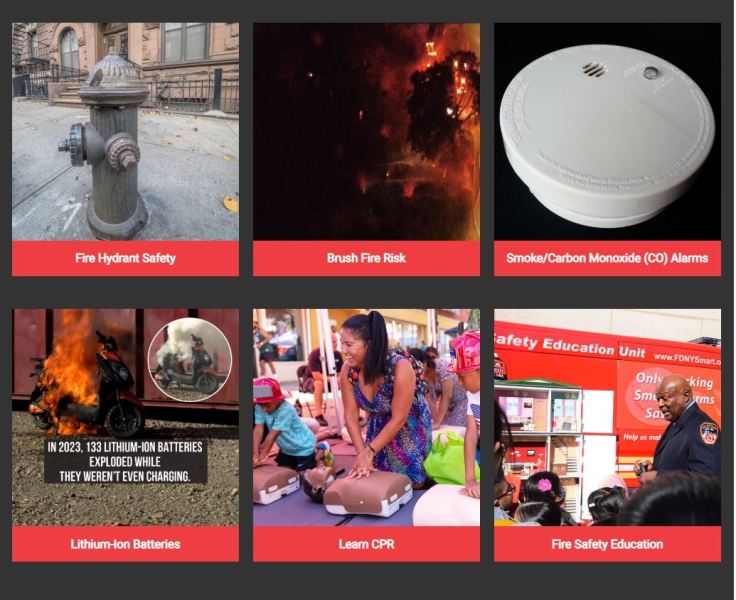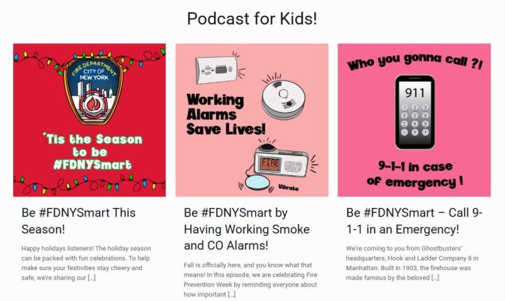 FDNYSmart – videos, podcasts and links to fire safety information for children and adults on smoke alarms, CPR, extension cords, space heaters and much more.