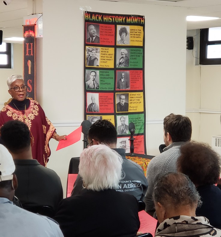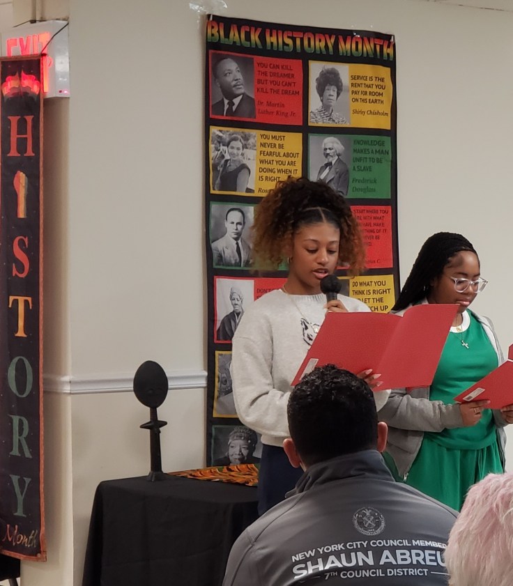 Sister Patricia Watler-Johnson led us in prayer and took little credit for inviting our elected officials, New York State Assembly Member Jordan J.G. Wright and New York City Council Member Shaun Abreu to share remarks. Mercedes Nesfield hosted the show, recruited and directed our in-house talent, and insisted that Dr. Onita Estes-Hicks’ former student and long time reader, Terry Lewis, also read this year. Terry gave his all when channeling Rev. Dr. Martin Luther King Jr.’s speech “Street Sweeper” and you could feel Dr. King’s timeless message in Terry’s voice.