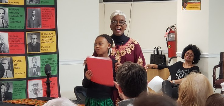 Hosted by the Committee of Concern, the program consisted of music selections from Cynthia Scott: “Lift Every Voice and Sing” by James Weldon Johnson and “Dream For One Bright World” by Ms. Scott, and Nikki Giovanni’s “Rosa Parks,” read and performed by our young neighbors: Damaris Acosta, Natalia Alejo, Majour Hampton, and Mekayla M. Moses. The afternoon also featured a dance performance by 9 year-old Journei Irvin, “God Gave Me Feet For Dancing,” and a reading appropriately named for the program’s theme: “Unsung Heroes of Black History” by 9 year-old Jamie Baxter. Having Emme Kemp to spontaneously bless us in song added to the specialness of the event.